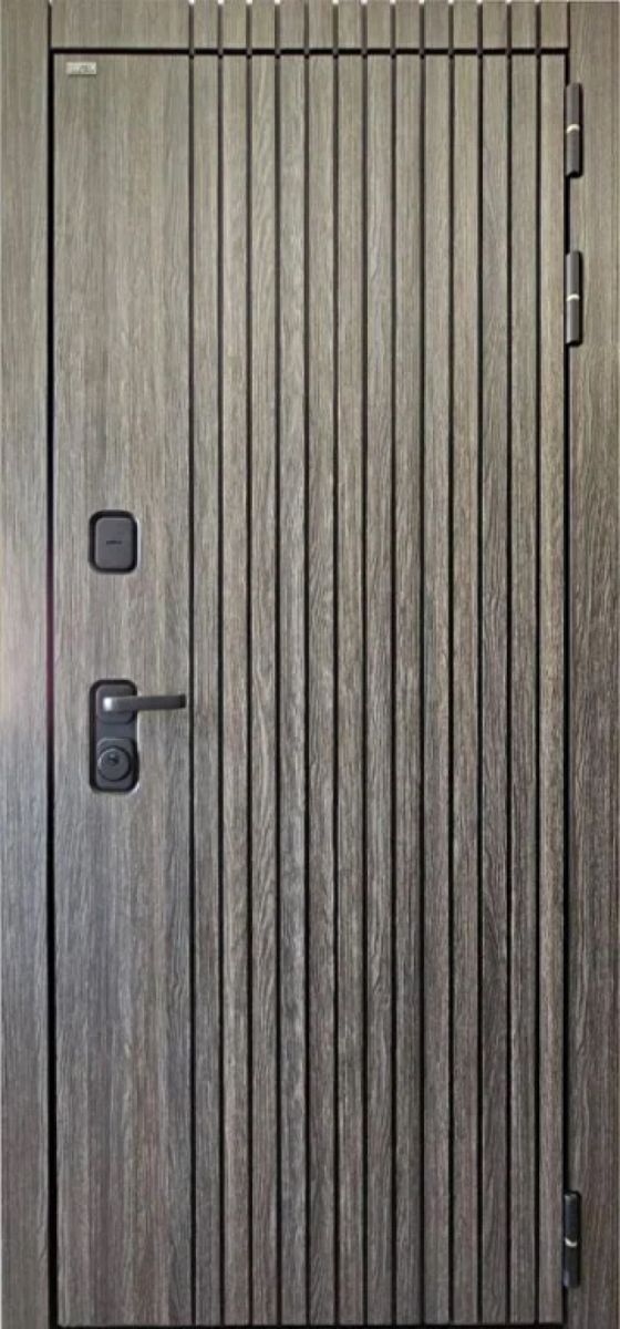 влагостойкая фрезерованная МДФ-панель 16 мм, с антивандальным пластиковым HPL покрытием, цвет - «Вудлайн темный», металл - порошково-полимерное покрытие, цвет «Муар черный» с предварительной обработкой цинкогрунтом