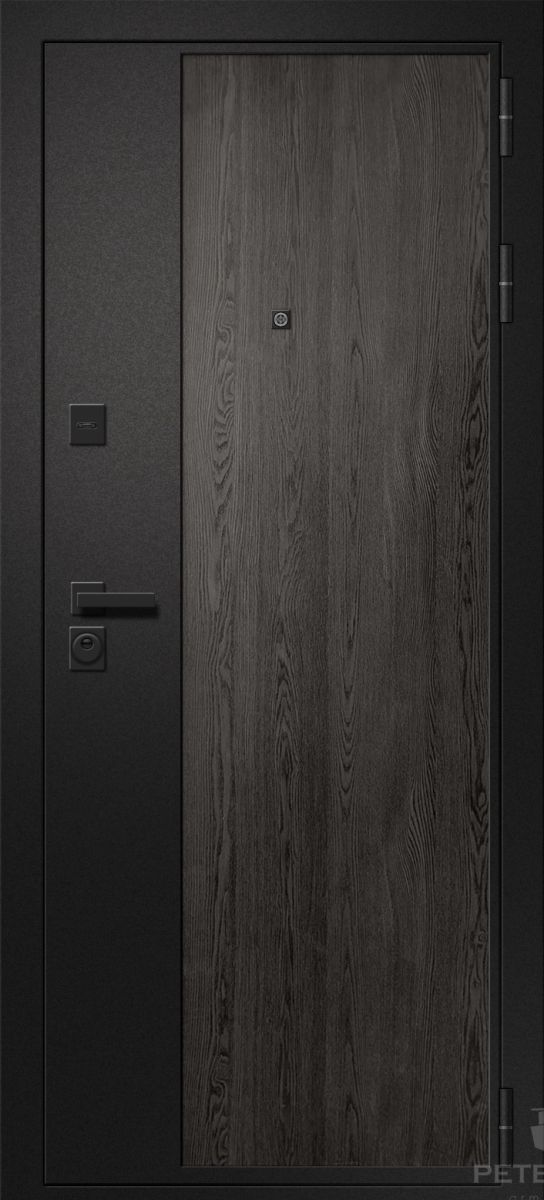Металл, порошково-полимерное покрытие, цвет - «Сатин черный» + МДФ-панель 10 мм, цвет - «Астана блэк вертикальный»